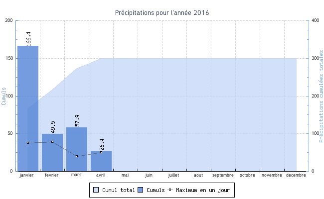 | avril | 4.8 °C | 6.7 °C | 18.8 °C | 14.8 °C | 11.4 °C | 0.0 km/h | 0.0 km/h | N |